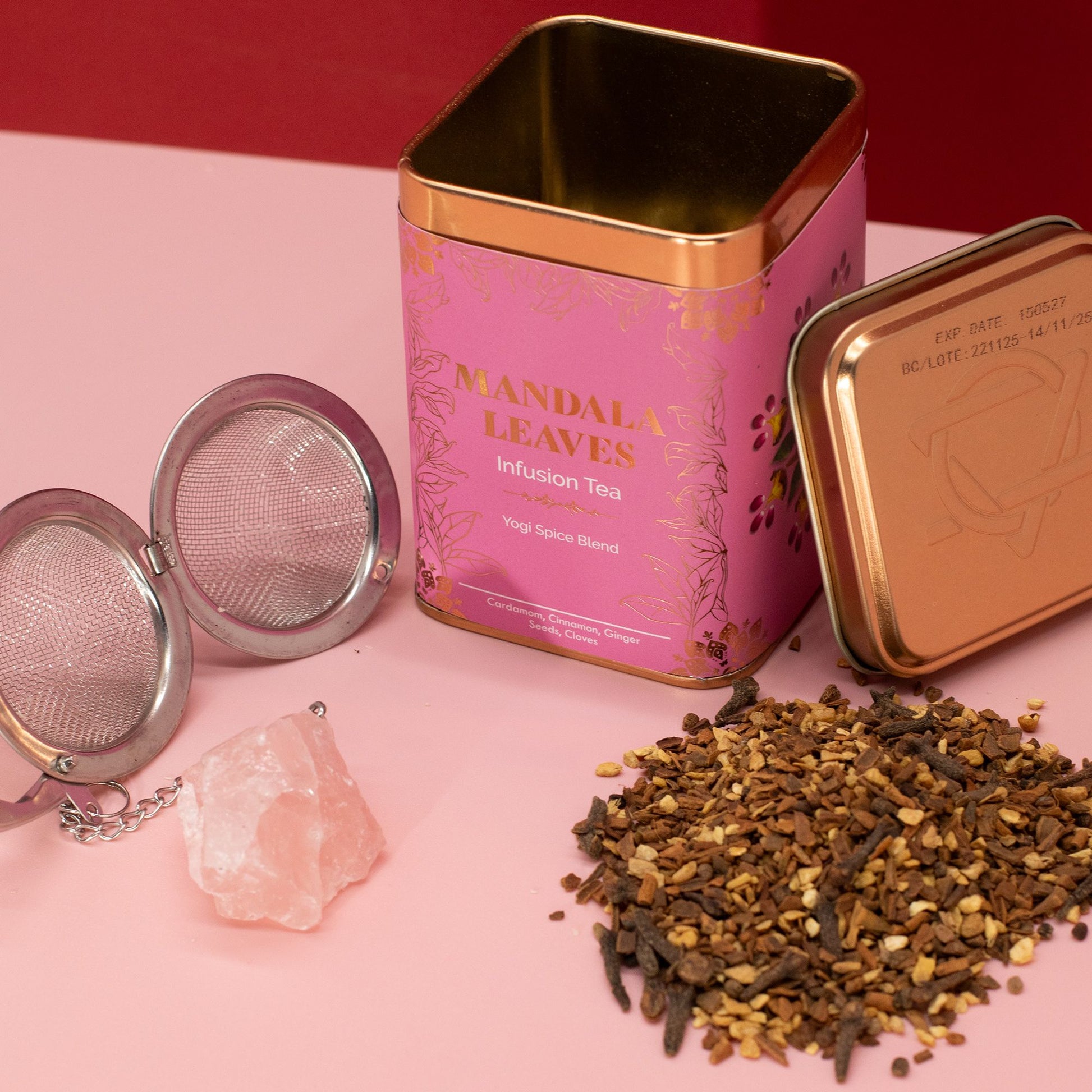 Empacado en España, Yogi Spice Blend viene en una lata con una etiqueta rosa adornada con detalles impresos en dorado, un reflejo del equilibrio y la armonía que promueve. La mezcla aromática se infunde en una taza profunda y dorada, con un aroma naturalmente dulce y vigorizante.