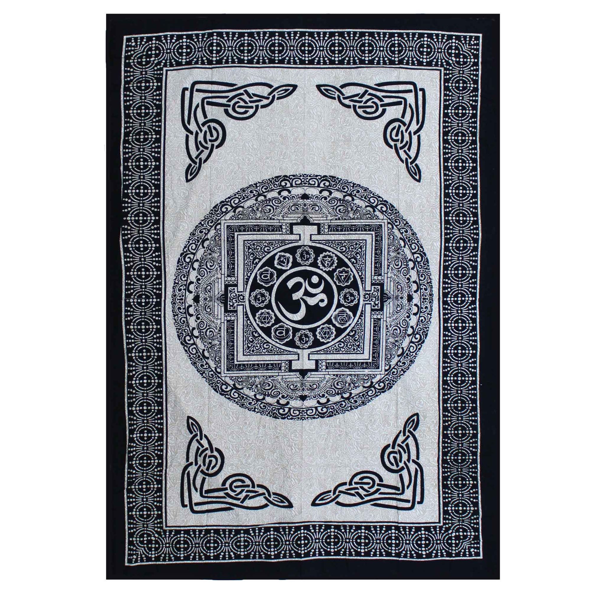Colcha Individual de Algodón + Tapiz de Pared - Mono - OM Mandala